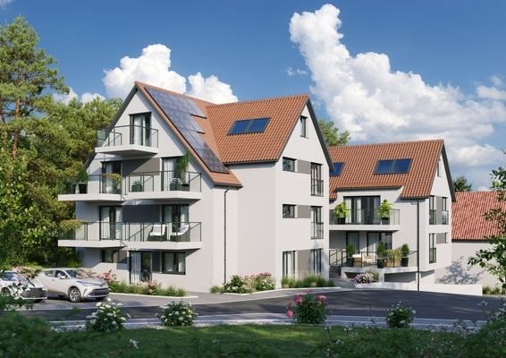 Mit nur 11 Wohnungen in 2 Flügeln bietet das PEROUSER DUO exklusives Wohnen in attraktiver Lage. Es entsteht auf einem sonnigen Hügelgrundstück in ruhiger Ortsrandlage in Perouse - einem Ortsteil von Rutesheim. Das zeitlose Architekturkonzept in dem hochw...