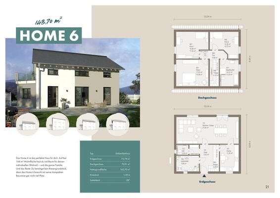 Das Home 6 ist das perfekte Haus für dich. Auf fast 144 m² Wohnfläche hast du viel Raum für deinen individuellen Wohnstil - und die ganze Familie. Und das Beste: Du benötigst kein Riesengrundstück, denn das Home 6 braucht mit seiner kompakten Bauweise gar...