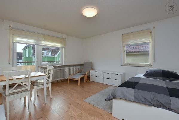 Modern möbliertes 1-Zimmer Apartment mit Balkon und Internet in verkehrsgünstiger Wohnlage in Stuttgart Bad Cannstatt.Einkaufsmöglichkeiten sowie die öffentlichen Verkehrsmittel befinden sich in fußläufiger Nähe.Der Wohn- und Schlafraum ist mit einem Fran...