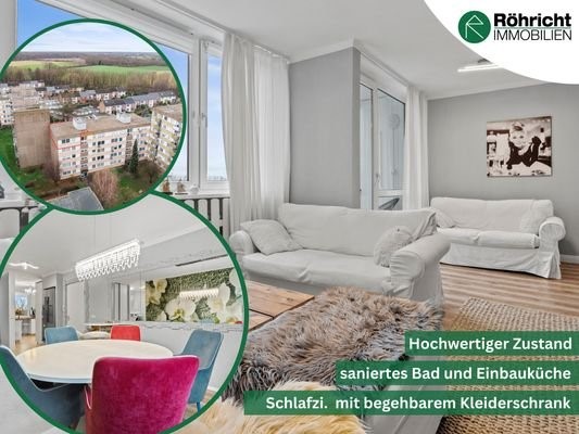 Die hier zum Kauf angebotene Zwei- oder auch Drei-Zimmer-Wohnung bietet eine Wohnfläche von ca. 73 m². Sie befindet sich im 4. OG eines 1971 erbauten Mehrfamilienhauses.Bei Bedarf kann das Esszimmer auch, durch eine noch einzubauende Trennwand, als weiter...