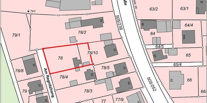 Grundstück: ca. 840 m² - Es handelt sich dabei um einen groben Schätzwert. Es ist geplant einen Teil des Flurstücks 78/10 abzuschreiben (siehe Skizze), und dem Flurstück 78 zuzuschlagen.Bestandsgebäude: Garage und gemauerter SchuppenBaurecht: Bebauungspla...