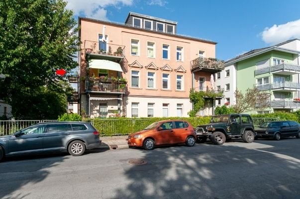 2-Zimmer-Wohnung im 2. OG eines sanierten Altbaus mit insgesamt 9 Wohnungen im Vorderhaus und 2 Wohnungen im Hinterhaus - Diele mit offener Küche - Wohnzimmer mit Nordwestbalkon - Schlafzimmer - Bad mit Fenster, Wanne und Waschmaschinenanschluss - Kellerr...