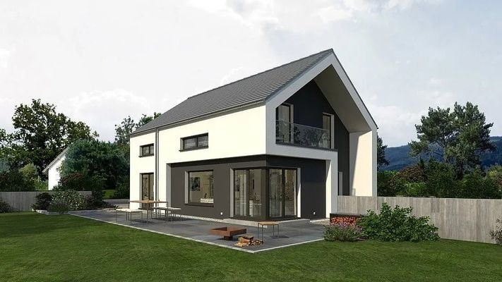 Klassisch und stilvoll präsentiert sich das 2-geschossige Einfamilienhaus Design 13. Unter dem Satteldach vereinen sich moderne Architektur und höchster Wohnkomfort. Im Entrée trennt die offene Treppe WC und HWR räumlich vom restlichen Wohnbereich ab. Auc...