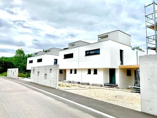 In leichter Hanglage zur Lauter hin wurden diese 3 Doppelhäuser im „Bauhaus“-Stil errichtet. Mit Flachdächern und überhängenden Obergeschoßen geben die klaren Formensprachen Moderne und Zeitgeist wieder.Offene Carports schaffen eine Verbindung zu den west...