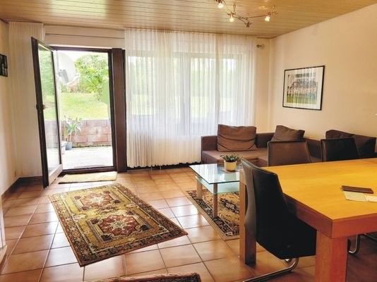 Gepflegte 2-Zimmer Wohnung mit Terrasse, Gartenanteil und PKW-Stellplatz im Erdgeschoss eines 8-Familienhauses in Kernen-Stetten.Da das Haus am Hang liegt, geht es 1 Treppe hoch zur Wohnung.Die Wohnung steht leer seit 01.11.2023 !Das Wohnzimmer, Tageslich...