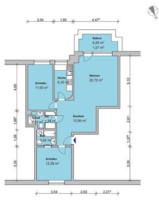 - Energieausweis: nur 83 kWh (m2-a), Klasse C, das ist sehr gut, liegt Ihnen bei der Besichtigung vor.- Diese tolle Wohnung liegt im 1. Stock und ist sehr hell, (EG-Wohnungen sind das oft nicht).- Zimmer 1: ca. 12,1 m², mit 2 Fenstern (Nord), Teppich Vani...