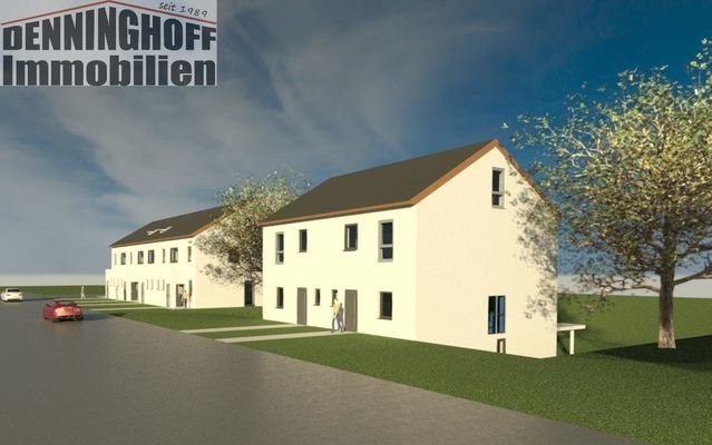 Bei diesem Bauvorhaben handelt es sich um 4 Reihenhäuser und 2 Doppelhaushälften.KFW55 mit Luft- / Wasser-Wärmepumpe.Haus 1: Reiheneckhaus (ca. 115m² Wohnfläche + 40m² Ausbaureserve im DG, 4 Zimmer, Küche. Diele, Tageslichtbad, Gäste-WC, HWR) ca. 296m² Gr...