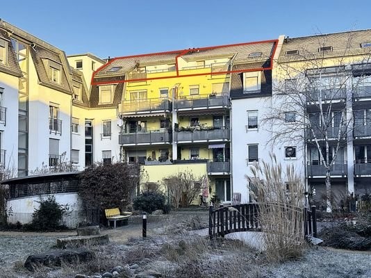 Wohnanlage „Beim Mühlbach“, Bj. um 1996. Die Anlage ist gepflegt, der parkähnliche Innenhof mit kleinem Teich, ein Spielplatz und viel Grün bieten ein angenehmes Wohnumfeld. Fernwärme. Putzfassade mit Wärmedämmung und Farbanstrich. Kunststoffisolierglasfe...