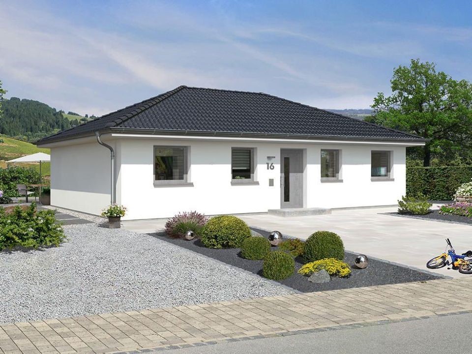 ObjektbeschreibungRuhe in den eigenen vier Wänden-Nichts besinnlicheres wünscht sich der Mensch. Das Bungalow 110 bieten alles auf einer Ebene.Nach einem schönen Spaziergang in der frischen Luft mit ihrem Partner&x2F;-in öffnen sie ihr Eigenheim und befin...
