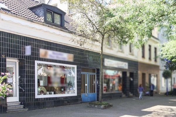 Das Gebäude befindet sich in einer geschlossenen Zeilenbebauung mitten in der Fußgängerzone. Bestehend aus einem Ladenlokal im Erdgeschoss, einer Wohnung im Obergeschoss und drei Lagern im Anbau. Die Einheiten sind unterschiedlich in einfachem Standard ge...
