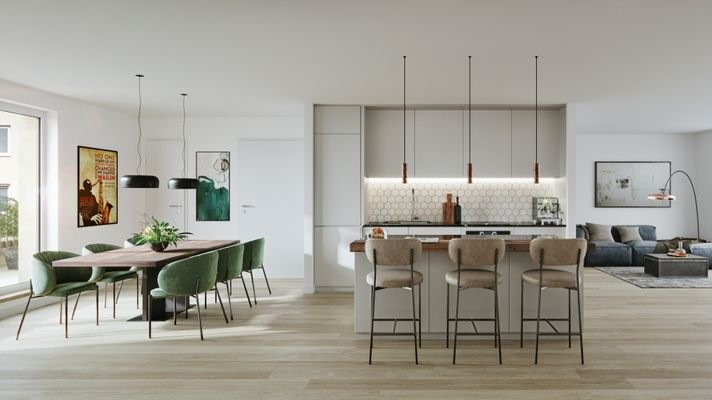 . 4 Zimmer oder 3 Zimmer Variante möglich. Offener Wohn-/Essbereich. Zwei Schlafzimmer, zwei Bäder. Westbalkon & Ostterrasse . Großzügiger Hauswirtschaftsraum mit Waschmaschinenanschluss. Zentral wohnen in Neuhausen-Nymphenburg. Eigentumswohnungen in...