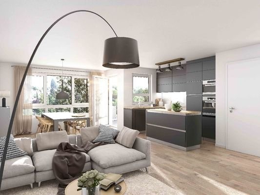 Im 8-Familienhaus entstehen 3- bis 4-Zimmer-Wohnungen mit Wohnflächen von ca. 85 - 110 m². Alle Wohnungen verfügen über eine Terrasse mit Garten oder einen großen Balkon mit Süd-West-Ausrichtung. Das Gebäude verfügt zudem über eine Tiefgarage, einen Aufzu...