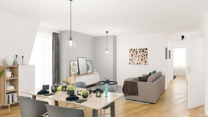Die hier angebotene vier Zimmer-Neubauwohnung besticht durch eine stilvolle Ausstattung und bietet auf ca. 124 m² Wohnfläche Raum zum Wohlfühlen. Ein neues, lebendiges Wohnhaus mit eigenem kleinen Park direkt vor der Haustür - das sind die exklusiven Eige...
