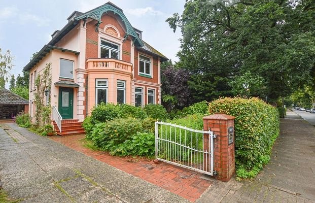 Rellingen - Gründerzeit: Repräsentative Villa mit Balkonen, Erker, herrlichem Garten u. Do.-Garage! Nahe Rosengarten und Mühlenau präsentiert sich diese großzügige Villa mit z.Z. zwei separaten Wohneinheiten, stilvollem Erker und Balkonen, hinzu kommen da...