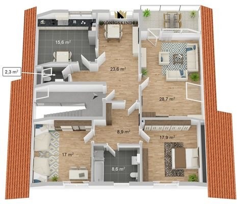 Zentral in Gütersloh gelegene und große DG-Wohnung - 249.000 € - , 124 m², 3 Zimmer