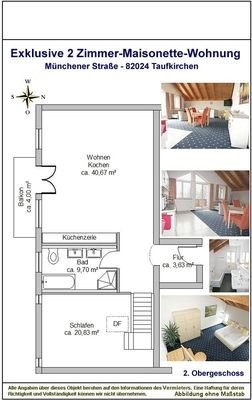 Exklusive vollmöblierte 2 Zimmer Maisonette-Wohnung, inkl. Strom u. WLAN - 82024 Taufkirchen bei München - , 76,8 m², 2 Zimmer