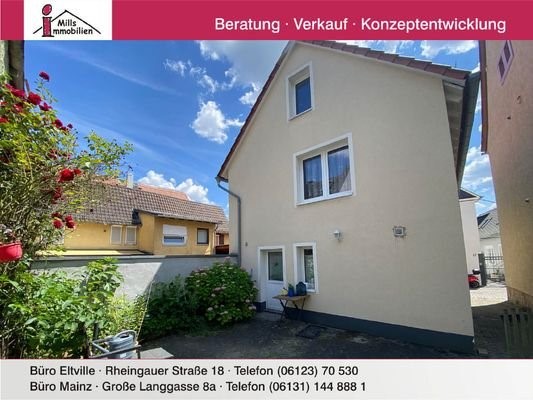 Walluf in Rheinnähe: Charmantes kleines Haus mit Terrasse/SitzplatzIm Überblick:- 3 Zimmer, Küche, 1 ? Bäder + kleiner ausbaubarer Speicher- Sitzmöglichkeiten im Hof (Terrasse)- kleines Nebengebäude durch Abriss Garten möglich- zusätzliches Gartengrundstü...
