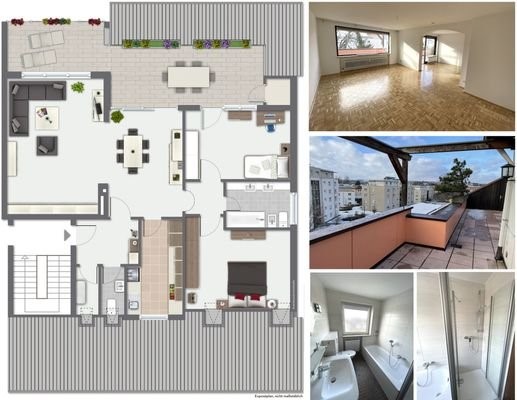 Die 3,5 Zimmer-Wohnung mit großer Dachterrasse und großem Wohn-Essbereich (mit ca. 41m²) überzeugt durch ihren Grundriss und ihre sehr gute Wohnlage unmittelbar neben dem Hofgarten. Das Bad und das Gäste-WC wurden bereits erneuert. Sämtliche Wände und der...