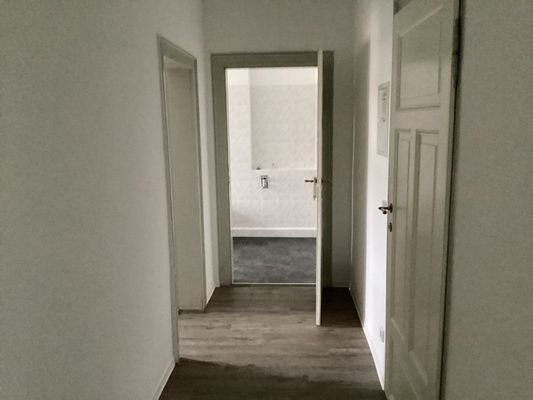 Dieses Schmuckstück befindet sich unterm Dach gleich links.Die Böden sind mit Vinylbelag versehen, die Wände schön weiß gestrichen. Im Bad befindet sich der WM-Anschluss, ein Handtuchheizkörper, Badewanne und ein Fenster.Zur Wohnung gibt es ein Kellerabte...