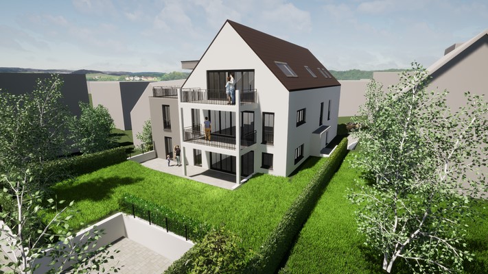 -5 Wohneinheiten jeweils mit Terrasse / Gartenbereich oder Balkonen / Dachterrasse-Wohnflächen von 98qm bis 148qm -große Glasflächen hin zum schön begrünten Gartengrundstück und in Richtung Westen-Tiefgaragenzufahrt innerhalb des Gebäudes-Zugang im Norden...