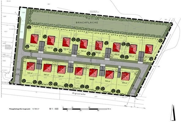 GrundstückVorhabengebiet „RIGI III“ – Wohnen in AlpenbergeAuf einem Teil der ehemaligen Kleingartenkolonie „Alpenberge“ nördlich der Rigistraße entsteht kurzfristig in kleines, feines Wohngebiet. Die geplante Wohnbaufläche nimmt eine Größe von ca. 9.800 m...