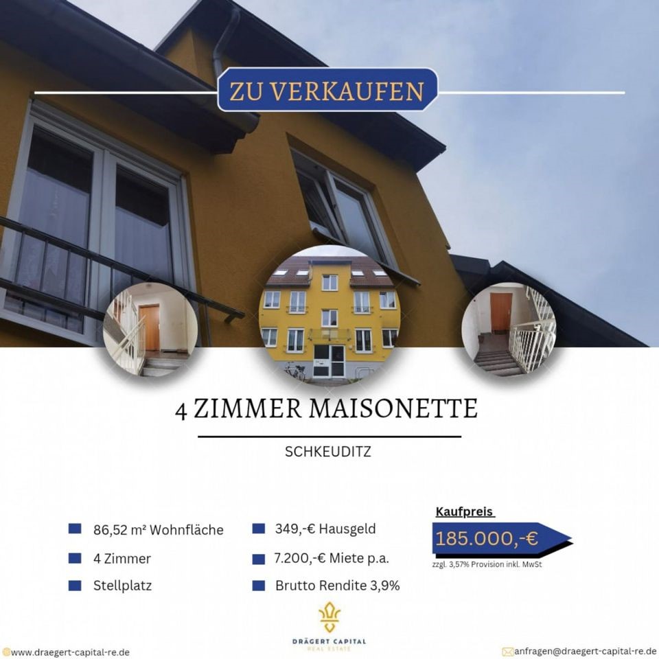 ObjektbeschreibungZum Verkauf steht eine vermietete Wohnung in einem im Jahr 1997 erbauten Haus in Schkeuditz und steht in einer schönen Neubausiedlung umgeben von Mehrfamilien- und Einfamilienhäusern.Es handelt sich um eine helle Maisonettewohnung in der...