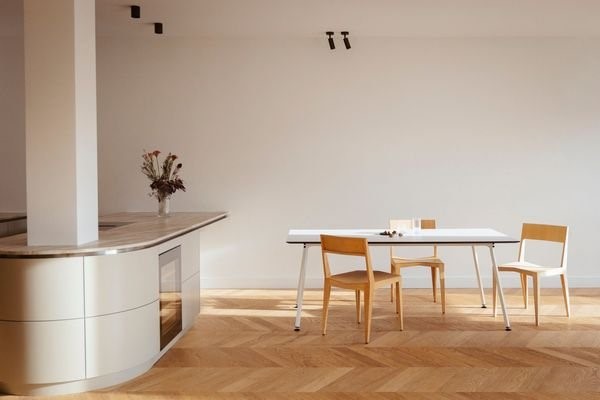 HIGHLIGHTS• handgefertigte greige-grüne Einbauküche Design by Decorazioni mit Naica-Quarzit-Arbeitsplatte und abgerundeter Insel• großzügiger, offener Wohn, Ess- und Küchenbereich• zwei Loggien jeweils in Richtung Norden und Süden• geöltes Eiche-Fischgrät...