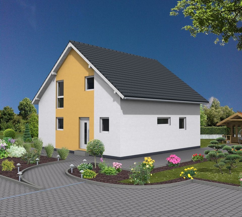 ObjektbeschreibungSchönes Einfamilienhaus für die ganze Familie.3 Schlafzimmer,! Gästezimmer,1 Wohn-Ess-Küchenbereich,1 Bad,1 Gäste WC, mit Fußbodenheizung LWP..Im Preis sind die Erdarbeiten und Kosten für Hausanschluss nicht endhalten. AusstattungDas Hau...