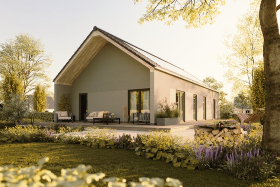 **Objektbeschreibung:**Modern, funktional und flexibel - Der Bungalow 100 ist optimal für alle, die ein Haus fürs ganze Leben suchen. Mit rund 100 m² Wohnfläche ist er nicht zu klein für eine junge Familie, aber auch nicht zu groß für ein Ehepaar im golde...