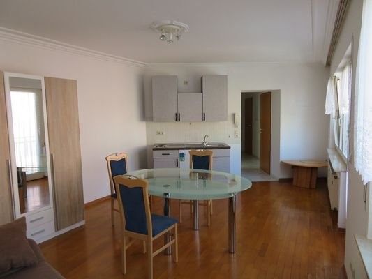 Das in einem gepflegten Altbau gelegene helle möblierte Appartement besteht aus einem großen Wohn-/Schlafbereich mit Küchenzeile, einem Flur und einem Tageslichtbad. Das Hauptzimmer ist mit echtem Eichenholzparkett verlegt und die Decke mit einer stuckähn...