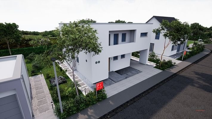 BAUHAUS- STIL TRIFFT MODERNEDie geradlinige Struktur der zweigeschossigen Flachdachvilla wird durch die Fassadenrücksprünge und die asymmetrische Gestaltung architektonisch ergänzt. Clever und vor allem für kleine Grundstücke geeignet: der integrierte Car...