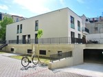 Moderner Neubau mit großem Balkon, Fußbodenheizung und offener Küche.